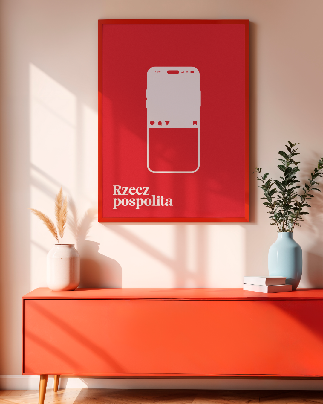 Plakat 11 listopada to minimalistyczna, autorska praca inspirowana polskim Świętem Niepodległości. Już od pierwszego spojrzenia projekt stawia na prostotę formy oraz czytelny przekaz, dzięki czemu doskonale odnajduje się we współczesnych wnętrzach. Jednocześnie zachowuje powagę i symboliczny charakter związany z tym wyjątkowym dniem.
